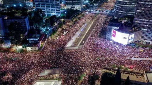 په اسرائیل کې د بي بي سي خبریاله الیس کوډې په خپل رپوټ کې وايي ډیرو احتجاج کوونکو ځان سره د اسرائیلو بیرغونه لېږدول و، دې کې ډېری کسان داسې و، چې د یرغمل کسانو راخوشي کولو غوښتنې شعارونه یې پر کمیسونو ټومبلي و.