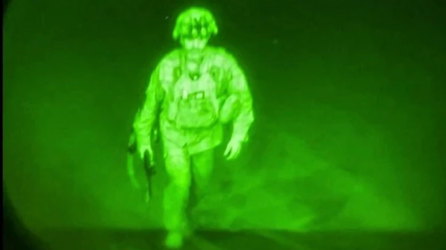 د ۲۰۲۱ کال د اګسټ میاشتې په ۳۰مه نیمه شپه د جنرال کریس دوناهیو په نامه وروستی امریکايي سرتېری سي ۱۷ باري الوتکې ته وخوت او په منځني ختیځ کې د امریکايي ځواکونو مرکزي قومندانۍ قومندان جنرال فرانک مککینزي یې د عکس په خپرولو په افغانستان کې د خپل حضور پای اعلان کړ.