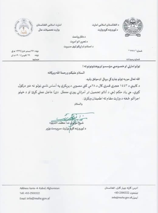 د ۲۰۲۲ میلادي کال د وروستۍ یا دسمبر میاشتې ۲۱ مه هغه ورځ وه چې د طالبانو حکومت د لوړو زدکړو وزارت د نجونو پر مخ ټول دولتي او خصوصي پوهنتونونه هم تر "امر ثاني" وتړل او دوی یې له لوړو زدکړو هم منع کړې. چارسمبالي طالب وزیر ندا محمد ندیم وویل چې دا پرېکړه یې د "منکراتو د مخنیوي" او د "شریعت د پلي کېدو" په موخه کړې.