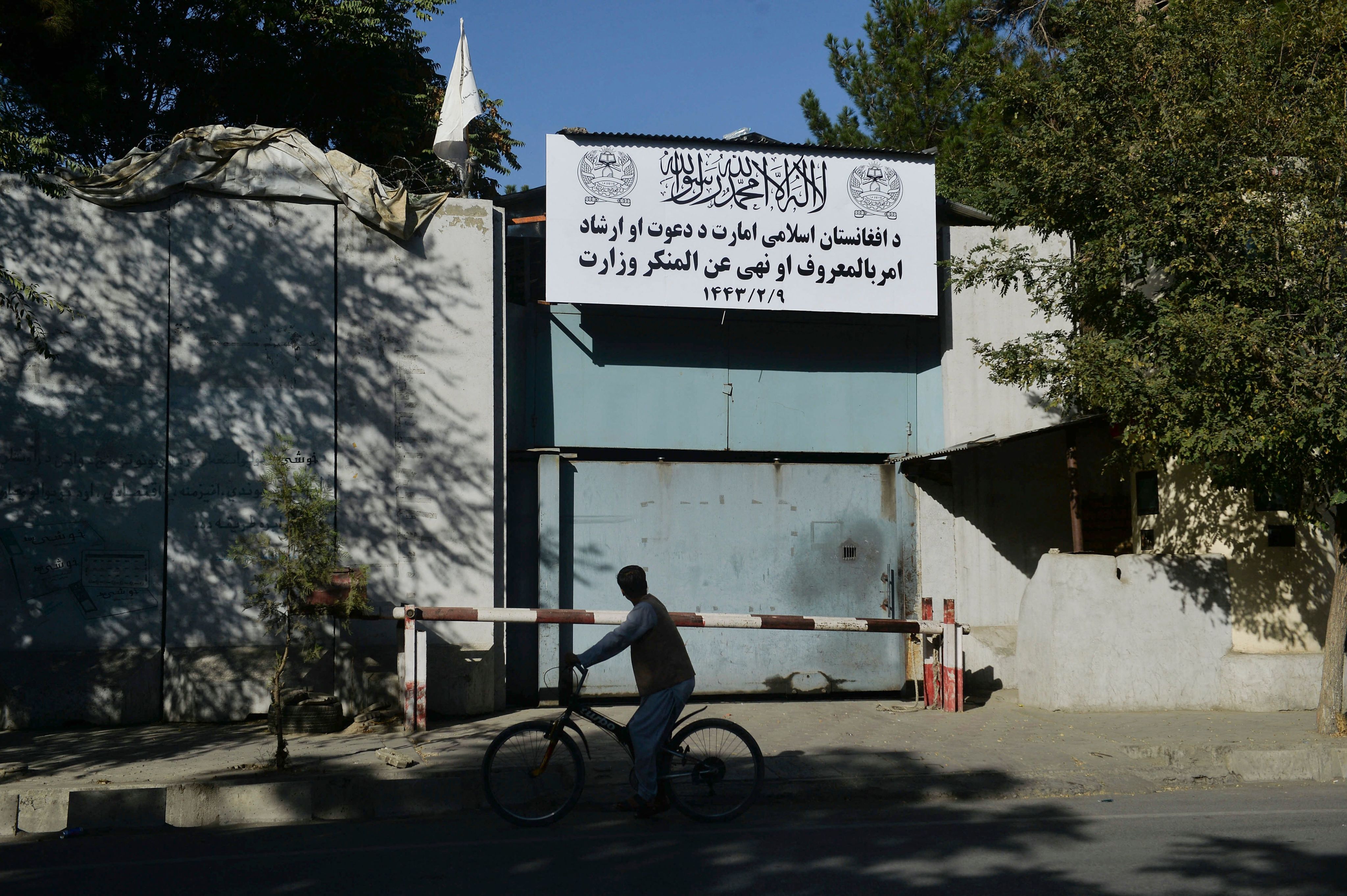 له سیاسته د ښځو ګوښه کولو په برخه کې د طالبانو حکومت دویم ګام د ښځو چارو وزارت له منځه وړل وو. که څه هم د سرپرست حکومت تر اعلان یوه ورځ مخکې هم ځينو طالب چارواکو بي بي سي ته ویلي وو چې د ښځو چارو وزارت نه دی لغوه او په اړه یې لا پرېکړه نه ده شوې. خو په سبا یې د امر بالمعروف او نهي عن المنکر وزارت هم په کابینه کې ځای و او د ښځو چارو وزارت کارکوونکې دغه وزارت ته له ورتګه منع کړای شوې وې. څو ورځې وروسته یاني د سپتمبر پر ۱۷مه یې لیک دړه د امر بالمعروف او نهي عن المنکر وزارت په نوم باندې واړول شوه.
