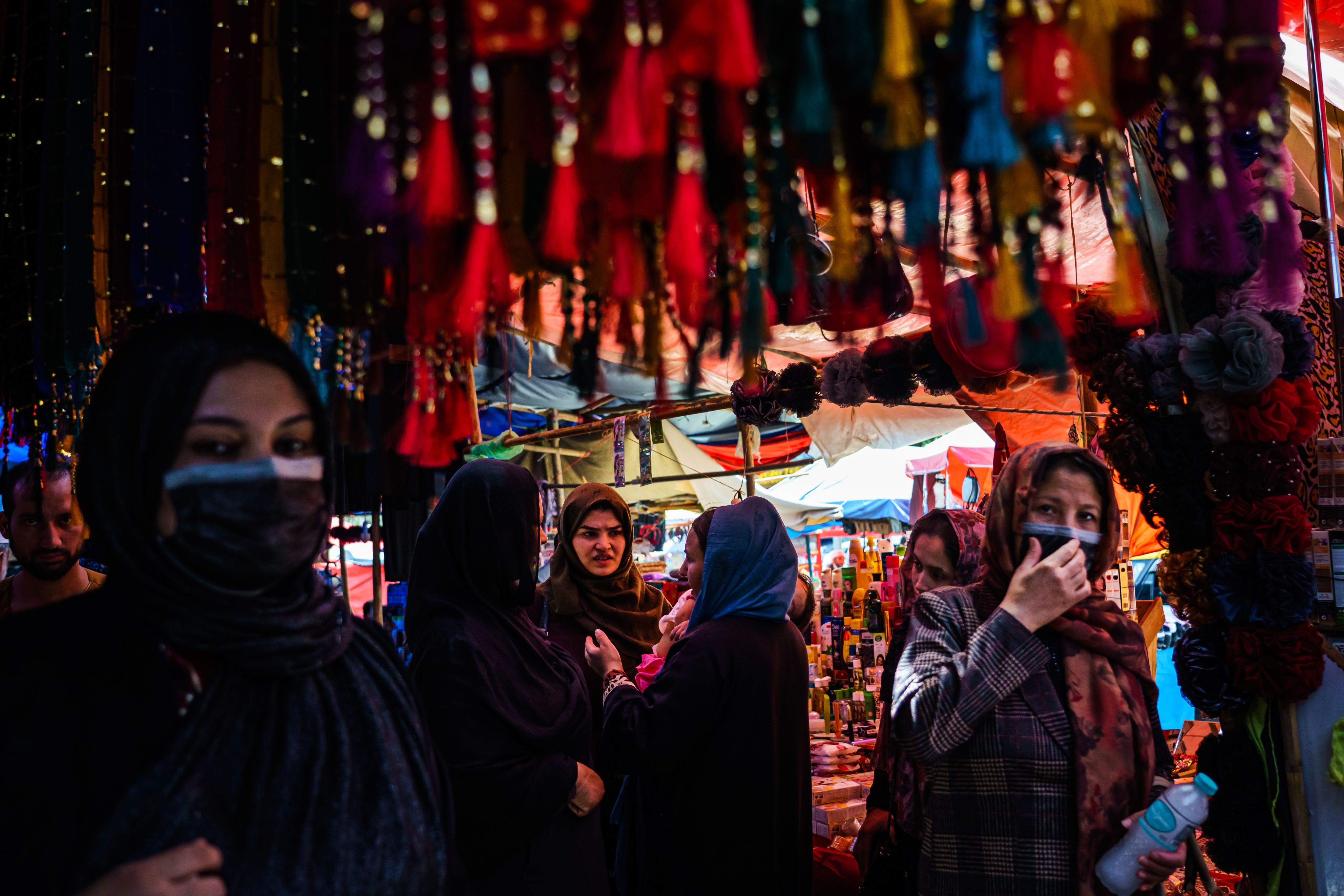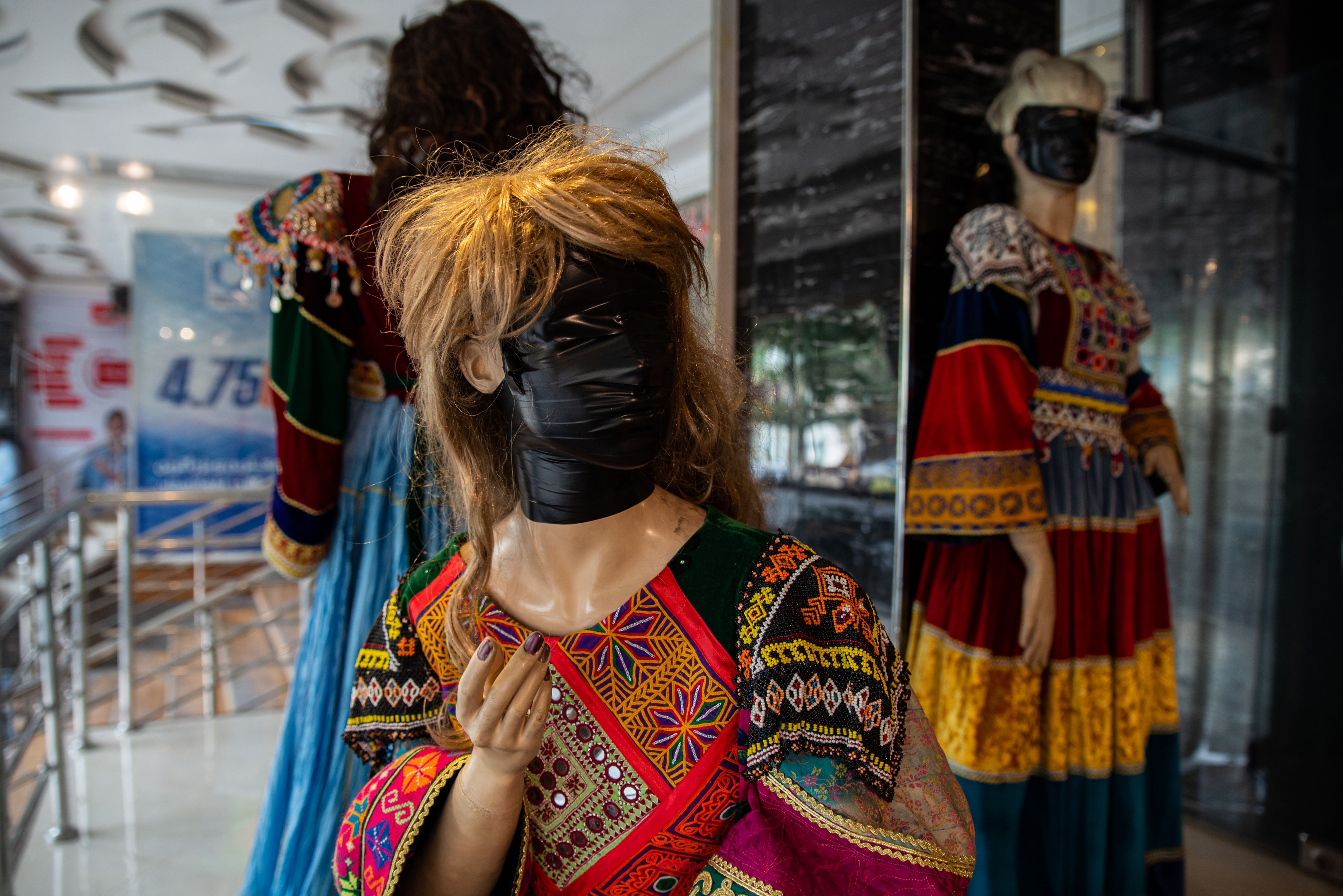 کابل ته د طالبانو په ننوتلو لا څو ورځې نه وې اوښتې چې د پلازمېنې د واټونو بڼه په اوښتو شوه. پر سینګارتونونو او دیوالونو د ښځو رسم شوي انځورونه په تور رنګ ورنګول شول او د جمهوري نظام پر مهال لیکل شوي شعارونه پټ او پرې د پاسه نوي شعارونه ولیکل شول. ځینو کې مېرمنو ته د حجاب مراعتولو سپارښتنه شوې وه. په همدې ترڅ کې ان له هټېوالو غوښتل شوي وو چې د هغو نانځکو مخونه هم وپوښي چې د ښځينه و کالي وراغوستل شوي وي. وروسته په کابل کې په یوه لویه غونډه کې په عامه ځایونو کې پر ښځو حجاب جبري اعلان شو