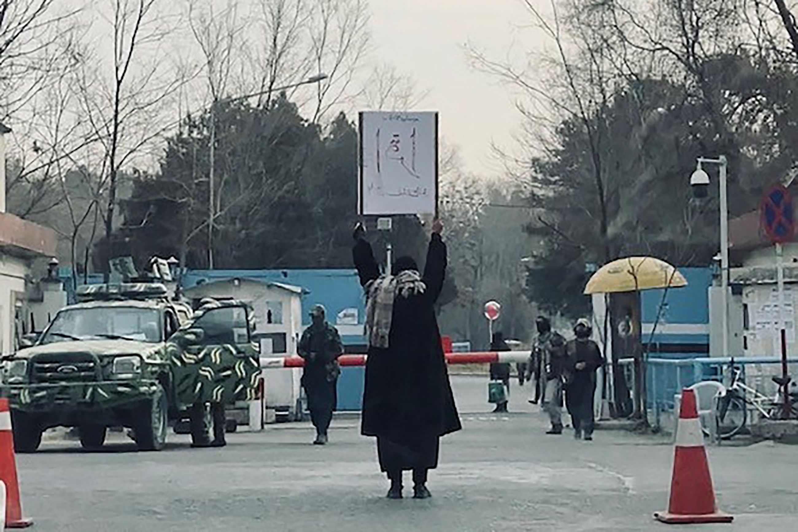یو طالب اعتراض کوونکې ښځې له مخکې تګه منع کوي