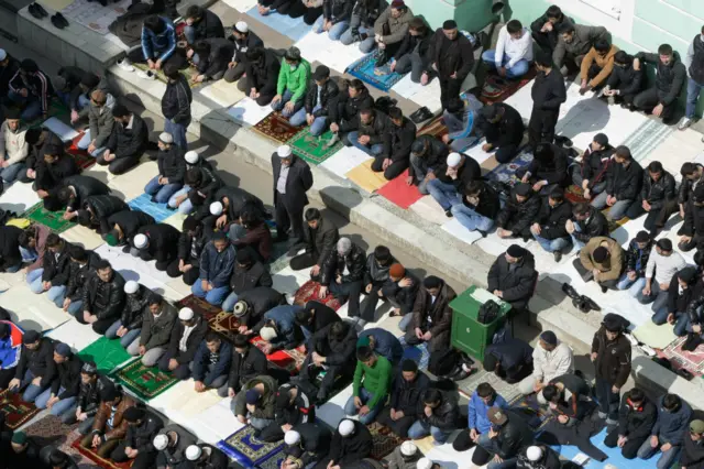 مسکو ټایمز ورځپاڼې روسیې کې د اختر د ترسره کېدو خبر ورکړی او د مسکو ښار کې یې د مسلمانانو عکسونه خپاره کړي چې په لوی څو میلیون ډالري جومات کې د اختر لمونځ ادا کوي.