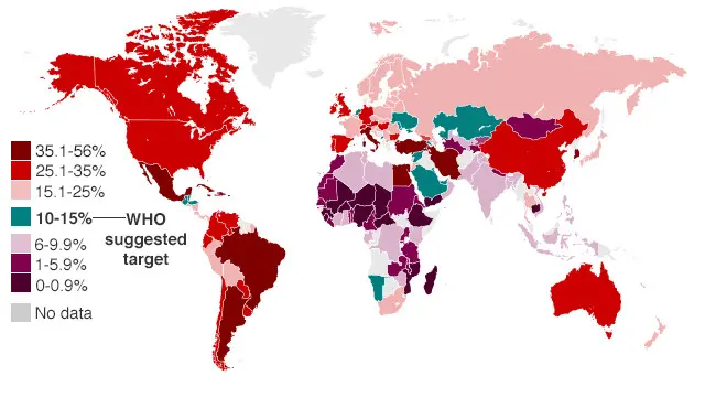 همدا راز په مصر کې دا شمیره ۵۱،۸ سلنه، په ترکیې کې ۴۷،۵ سلنه او په اېټالیا کې ۳۸،۱ سلنه ده.