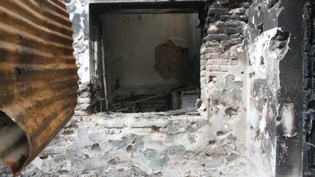 اداري خونې چې د دغه ودانۍ په یوه ګوښه کې دي هومره زیان یې نه دی لیدلی خو په ټولو دېوالونو د ګولیو خاپونه شته.