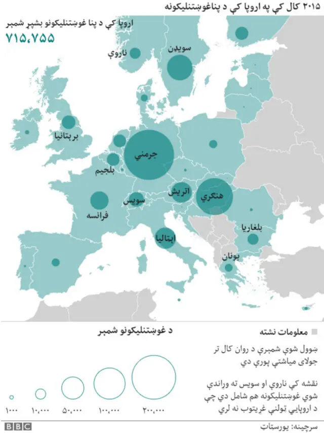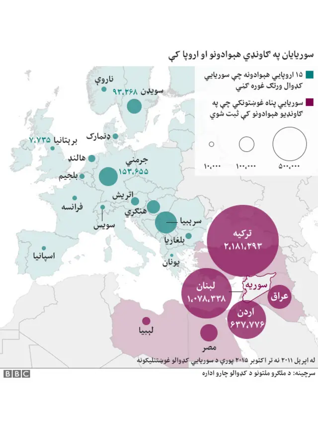 د سوریې د سختې کورنۍ جګړې له امله چې څلور کاله پخوا پیل شوې او د پای نښې یې نه ښکاري په ۲۰۱۵ کې اروپا کې د سوري پناه غوښتونکو شمېر ناڅاپه زیات شو.