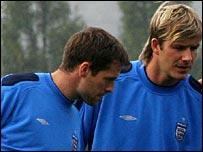 د انگلستان د فوټبال د ملي لوبډلې دوه تکړه لوبغاړي ديويد بيکهم او مايکل اوين په ډاگه کړې ده چې دوى به د نړيوالو اتلوليو د غوراوي په هغه لوبه کې چمتو وي چې له اتريش سره په مانچستر کې د شنبه ( د اکتوبر ٨ د تلې ١٦ ) په ورځ کيدونکې ده .بيکهم د انگلستان د ملي لوبډلې کپتان او اوين يې مرستيال دى . د بيکهم زوى ناروغه دى او داسې گنگوسي وو چې دى به د هغۀ د ناروغۍ له امله په دغه لوبه کې ونډه وانه خلي . مايکل اوين بيا تيره اوونۍ يوې لوبې ته د چمتووالي پر وخت ټپي شوى و خو اوس روغ رمټ دى . انگلستان بايد نه يوازې د شنبه په ورځ اتريش بلکه د چارشنبه په ورځ پولنډ ته هم ماتې ورکړي چې د ٢٠٠٦ کال د نړيوالو اتلوليو په لوبو کې ځان ته ځاى ومومي . دغه لوبې به په جرمني کې ترسره کيږي .