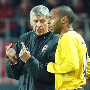 | | | د انگلستان د ارسنل لوبډلې روزونکى ارسن وينگر خپل لوبغاړي تيري هارنري ته لارښونه کوي ، داسې ښکاري چې د روزونکي خبرې هانري د زړۀ په غوږونو واوريدرې ځکه چې وار د واره يې گول وکړ. |