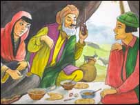 زيرک وايىدا کڅوړه مى د اوبو او ډوډۍ د راوړلو لپاره له ځان سره ساتلى. اجمل په ډيرى مينى سره خپل دستر خوان غوړوى او خپله ډوډۍ چى اوبه – ډوډۍ او پنير دى خپلو ميلمنو ته ورکوى او هغوى ته د ډودۍ ست کوى. گاډيوانه له خپلو ماشومانو سره يوځاى ډوډى خورى او د ډوډۍ له خونده صفت کوى. زيرک وايى چى په ورښو او دښتو کى يى زړه نه تنگيږى او وايى چى کله چى رمه پياى له امان الله سره چى د هغه ملگرى دى غورسى کوى. ياتيږى واروى او داسى نورى لوبى هم کوى. په همدى حال کى د اجمل د تيږو وارولو لوبه خوښيږى يوه تيږه را اخلى او غواړى چى واره يى کړى خو نه شى کولاى. زيرک ورپورى خاندى او وايى چى دا کار په تمرين پورى اړه لرى که نه نو سړى خوږوى. اجمل په خندا وايى چى تا خو قوى خواړه خوړلى دى لکه شيدى- کوچ- پنير- زيړ غوړى او داسى نور... نو ځکه قوى وي. گاډيوانه له زيرکه غواړى چى يوه سندره ورته ووايى. زيرک او امان الله دواړه ورته سندره وايى چى د ټولو خوښيږى. نسيمه له زيرکه پوښتى چى له ژونده اود کوچيتوب نه راضى دى که نه؟ هغه وايى نه دا ژوند مى چندان نه خوښيږى غواړم په يو ځاى کى و اوسو تر څو زه مکتب ولولم. ځکه مکتب ويل مى د ژوند لوى ارمان دى. په دى حال کى سپى غاپى او گاډيوانه وايى چى وخت مو کم دى راځۍ چى ولاړ شو. له زيرک نه مننه کوى او زيرک د شپيلى په ږغولو ليرى کيږى. ګاډيوانه هم گادى راغواړى او له ماشومانو سره يو ځاى د کور خواته ځى. |