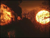 | | | دغه اور تر دويمې نړيوالې جگړې وروسته د اروپا تر ټولو ستر بلل شوى دى . | د يکشنبه په ورځ ( ليندۍ ٢٠ دسمبر ١١ ) لندن ته نژدې د شويو چاودنو پلټونکى وايي چې اور ښايي هغه ټولې نخښې نښانې ورسره لولپه کړې وي چې ښايي د دغۀ اور اصلي دليل ترې ښکاره شوى واى . په اور کې ٤٣ کسان ټپيان شول خو ايله د دوو وضعه جدي بلله شوې ده . دا اور تر دويمې نړيوالې جگړې وروسته د اروپا تر ټولو ستر بلل شوى دى . شاوخوا ٢٠٠٠ کسان له دغې سيمې ايستل شوي دي او له نورو غوښتنه شوې چې دروازې او کړکۍ وتړي چې لوگى يې روغتيا ته زيان ونه رسوي .  | | | هميل همسټيډ کې چې له لندنه ٤٠ کيلومتره ليرې دى د تيلو په زيرمه ځايونو کې اور ولگيد |