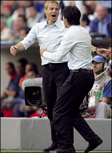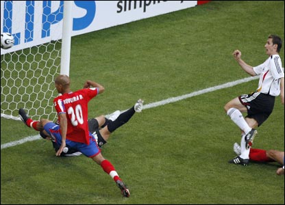 د کوربه هيواد جرمني تر رنگارنگو پرانيستونکو نندارو وروسته له کوستاريکا سره د بريد په برخه کې ښه لوبه وکړه. د جرمني گول وهونکي کلاوس د خپل هيواد له څلورو گولونو څخه دويم او دريم وکړ . جرمني دغه لوبه ٤-٢ وگټله خو دوه گولونه يې داسې وخوړل چې که د هر هيواد تيز ځغستونکي ورسره مخامخ شي ښايي د دوى له دغه ضعفه لا ډيره گټه واخلي.