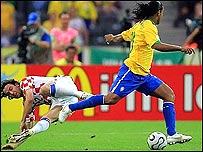 د برازيل رونالدو د گول مخته داسې ښکاريدۀ لکه يو عادي لوبغاړى چې لوبه کوي، رونالدينيو هم هغسې ونه ځليد چې په دې وروستيو کلونو کې خلک ورڅخه هيله لري . د کاکا گول چې له کيڼ اړخه يې په تيز شوټ ترسره کړ د برازيل يوازينۍ هڅه نه وه خو بيا هم ښايي برازيليانو تر هغې کچې ښه لوبه ونه کړه چې اوس ورڅخه تمه کيږي . برازيل پنځه ځله د نړيوالو اتلوليو اتل شوى دى او له ١٩٩٤ کال څخه راهيسته يې په پرله پسې توگه پايلوبې ته ځان رسولى چې دوه ځله پکې بريالى او يو ځل هم د فرانسې په وړاندې پاتې شوى دى . فرانسې په ١٩٩٨ کال کې برازيل ته په پايلوبه کې ماتې ورکړه وه . خو په ٢٠٠٢ کال کې فرانسوي لوبغاړو په درو لوبو کې يو گول ونه کړ او له لومړني پړاوه ناهيلي ستانۀ شول . په پرونۍ لوبه کې چې له سويس سره مخامخ وه فرانسه بيا هم ونه توانيده چې گول وکړي . د فرانسې په لوبغاړو کې زيدان د خپل تير عمر په سر هم ښه لوبيدۀ خو نور داسې کوم کس نه و چې د هانري په څير گول وهونکو ته موقعې برابره کړي .