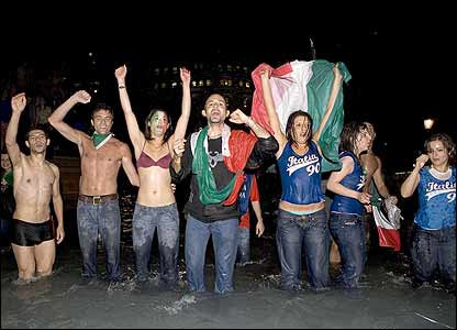 ايټاليايانو د فوټبال نړيوالې اتلولۍ پر گټلو کرۍ شپه پر لمانځنو او نڅاو تيره کړه