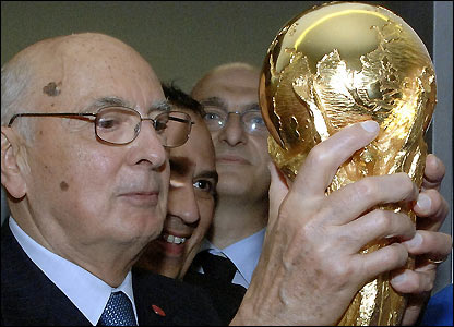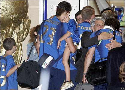 د ايټاليا ملي فوټبال لوبډله هيواد ته په ستنيدو د سلگونو زرو مينه والو له تاودۀ هرکلي سره مخامخ شوه . ايټاليايي فوټبال لوبډلې په جرمني کې د ٢٠٠٦ کال نړيوالې اتلولۍ فرانسې ته په ماتې ورکولو د يکشنبې په ورځ ( د جولاى ٩ د چنگاښ ١٨ ) وگټلې .
