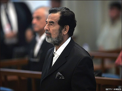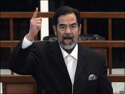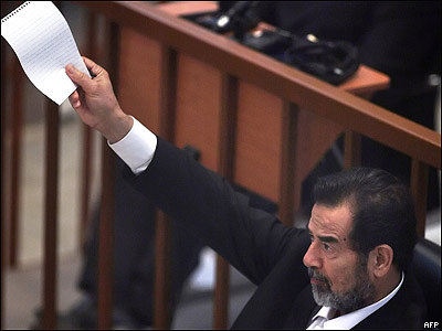 صدام حسين د محکمې په لومړيو کې په بيا بيا دا پوښتنه کوله (( أيا دا محکمه ددې حق لري چې دى محاکمه کړي". ))