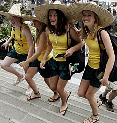 ورښت او لمر استراليايي نندارچيان راونه گرځول .جوپه جوپه نجونې له نورو نندارچيانو سره لوبغاليو ته روانې وې چې دغه په زړۀ پورې لوبې وگوري