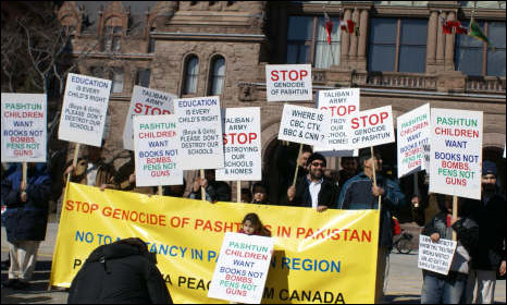 د کاناډا په ټورنټو کې پښتونخوا امن فورم يو سوله يزلاريون کړى چې په سوات قبايلي سيمو او د پاکستان په نورو ځايونو کې د بې وزله پښتنو وژنه بده کړل شي. لاريون کونکو له ملگرو ملتونو،کاناډا او نورې نړيوالې ټولنې څخه ديوې کاري ستراتيژۍ غوښتنه کړې چې د پاکستان په پښتون اکثريتي سيمو لکه فاټا سوبه سرحد او داسې نورو برخو کې دې د پښتنو سياسي او ټولنيز مشرانو ته ريښتينى واک وسپارل شي چې سوله پرځاى شي . د لاريون گډون کوونکو له ملگرو ملتونو او او نړيوالې ټولنې غوښتنه کړې چې په سوات او د سرحد سوبى په نورو برخو کې دبې گنا پښتنو د وژنې په کلکه غندنه وکړي.
