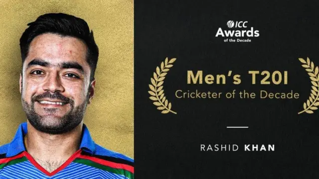 د کرېکټ نړیوالې شورا د افغانستان سپېن توپ اچوونکی راشد خان د تېرې لسیزې د شل اوریزو لوبو تر ټولو غوره لوبغاړی اعلان کړ. له دې ویاړ یوه ورځ وړاندې (ای سي سي) راشد خان د تېرې لسیزې د شل اوریزو لوبو په غوره لوبډله کې هم شامل کړی و.