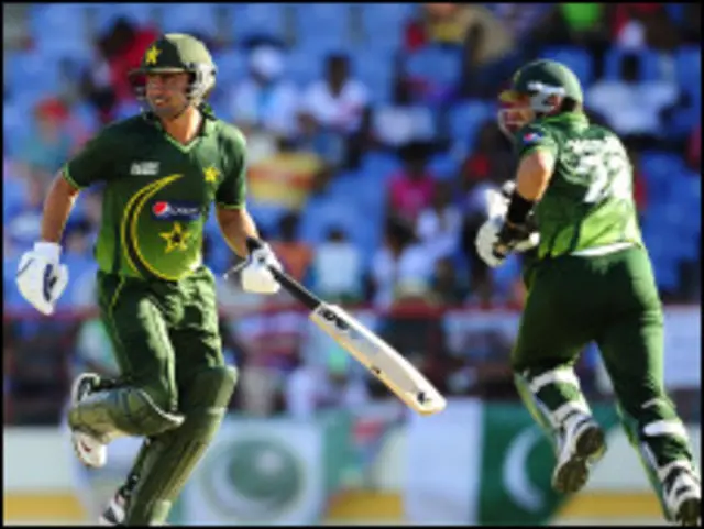 د پاکستان له لوري احمد شهزاد او شرجیل خان ولاړ دي. <span >ډېر په احتیاط لوبه کوي.<span >حمید حسن په يوه اوور کې یواځې پنڅه منډې ورکړې>