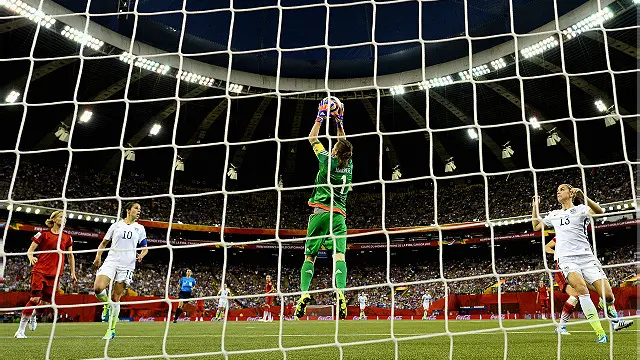 امريکا د ښځو فوټبال اتلولۍ نيمه پايلوبه کې، چې د کاناډا مونټېريال کې کېده، دوه ځله اتلې جرمنۍ لوبډلې ته په ماتې ورکولو څلورم ځل د دغې اتلولۍ پايلوبې ته رسېدلې ده.