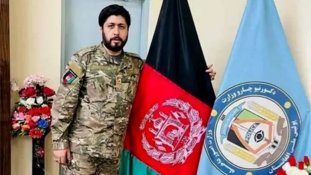 د هغه دوه داسې انځورونه لاس په لاس کېږي چې په یوه کې يې نظامي لباس په تن د افغانستان د ملي بیرغ ترڅنګ ولاړ دی او دویم کې یې جسد پر ځمکه پروت لېدل کېږي.