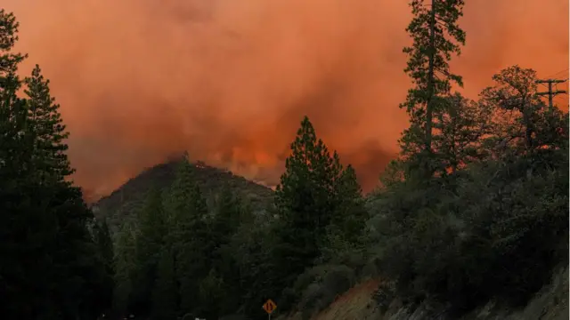 د امریکا کلیفورنیا ایالت کې 'یوسېمیتي ملي پارک' ته نژدې لګېدلی ځنګلي اور په چټکۍ د خپرېدو په حال کې دی او زرګونه کورونه یې خطر سره مخامخ کړي دي.