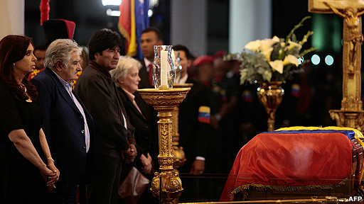 د جمعې په ورځ په کاراکاس کې د لاتینې امریکا مشران د چاوېز د مړي د درناوي لپاره راغونډ شول.