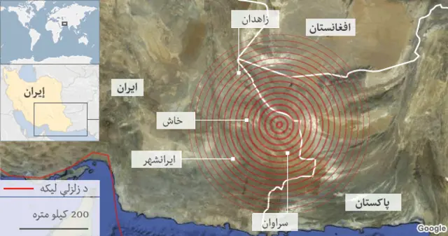 زلزله د ایران له ځايي وخت سره سم د ماسپښین درې بجې او ۱۴ دقیقې راغله، چې مرکز یې د ایران اوپاکستان پولې ته څېرمه د خش کلی و.