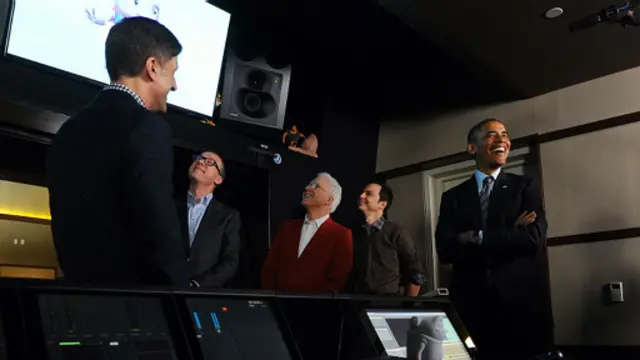 مخکې له دې چې د ځوانو کارکوونکو غونډې ته وينا وکړي ښاغلي اوباما د هاليووډ له مديرانو سره وکتل او جيفري کتيزنبرگ په ملگرتيا يې د "ډريم ورکس اينيميشن د گلندايل" ستډيو بېلابېلې برخې ولېدلې.