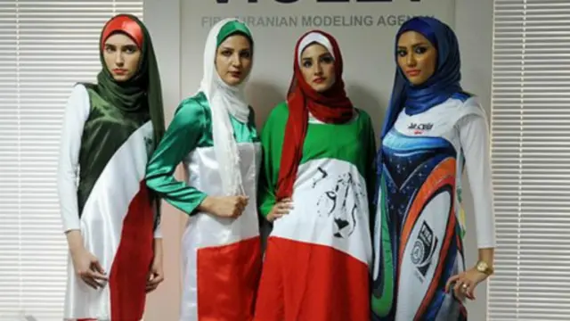 د ایران پلازمېنه تهران کې د کالیو فېشن مؤسسې د فوټبال نړیوالو اتلولیو په مناسبت د شرعي ښځينه کالیو فېشن شو جوړه ړکې ده.