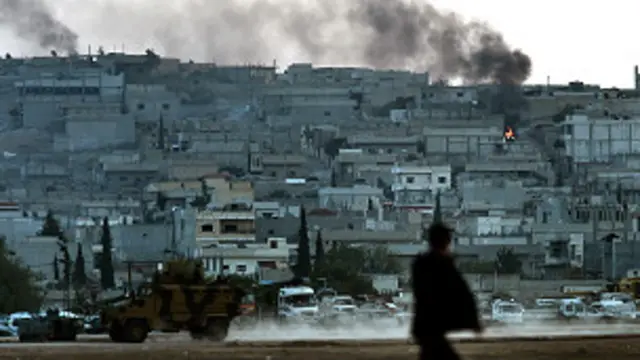 په سیمه کې د بي بي سي یو خبریال وايي د ایتلافي ځواکونو هوايي بریدونو د اسلامي دولت د مخکې تګ مخه ونیوله.