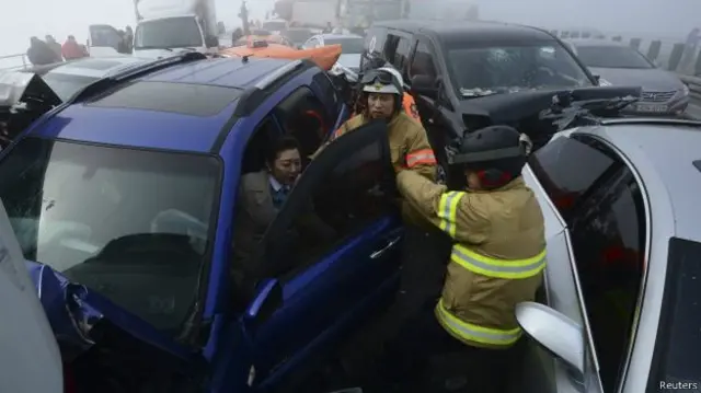 د سوېلي کوریا انچیون ښار کې نژدې سل موټر ټکر شوي، چې دوه کسان پکې وژل شوي او ګڼ نور ټپیان دي.