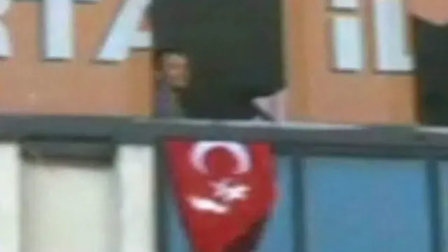 ویل کېږي، برید کوونکي د ودانۍ اوو پوړ ښیښه ماته کړې او توره لرونکی د ترکیې بیرغ یې رپولی دی.