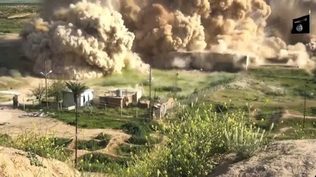 دغه ویډیو ښيي، چې د داعش اورپکي بلدوزر او نور چاودیدونکي توکي د دغه لرغوني ښار د ورانولو لپاره کاروي.