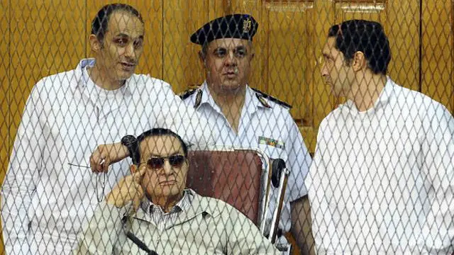 په لومړۍ محاکمه کې، محکمې پر مبارک د درو کلونو بند پرېکړه وکړه، خو د هغه زامن علاء او جمال یې په څلورو کلونو سخت بند محکوم کړل.