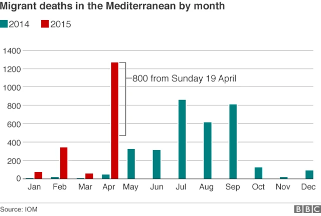 تخمین شوی چې تیر کال د یو شمېر هېوادو لکه سوریې، اریتریا، نایجریا، او سومالیا څخه د ۲۰۰،۰۰۰ نه زیات کډوال د جګړو او خوارۍ غریبۍ له امله تښتېدلي او د مدیترانې له لارې اروپاته تېر شویدي، چې په زرګونو يې د دې سفرونو په ترڅ کې مړه شویدي.