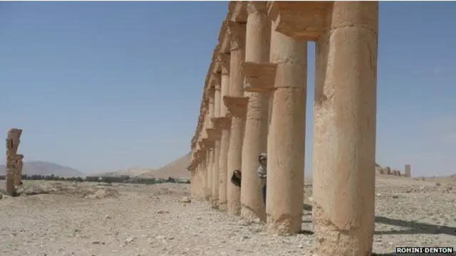 ''دا په رښتیا هم د لرغونې نړۍ له پاتې شوو یوه ډېره ښایسته سیمه ده. کله چې د دمشق څخه د ختیځ پر لور سفر کوئ، لېرې په دښته کې وینې چې آبادي ښکارېږي، دفعتاً مو پام کېږي چې یوه جادويي سیمه، له لوړو ستنو سره ستاسې وړاندې ولاړه ده.''
