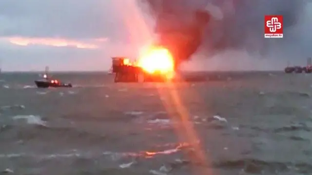 کسپین سمندرګي کې د اور لګېدو له کبله ۳۰ کسان تري تم شوي