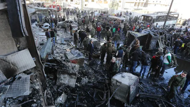 د سوريې دولتي سرچينو په وینا لومړی بم په يوه موټر کې ځای پر ځای شوی و او له هغه وروسته دوو ځانمرګو بريدګرو ځان پورې تړلي چاودېدونکي توکي والوزول.