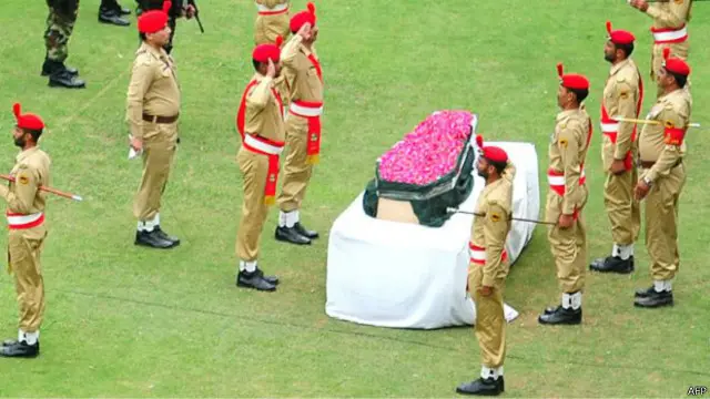 د بي بي سي خبريال رياض سهيل په وينا د نوموړي د جنازې په مراسمو کې د پاکستان ولسمشر ممنون حسين، د پوځ د مشرانو او د سياسي ګوندونو مشرانو ګډون کړی و چې ټينګ امنيتي تدبيرونه ورته نيول شوي وو.