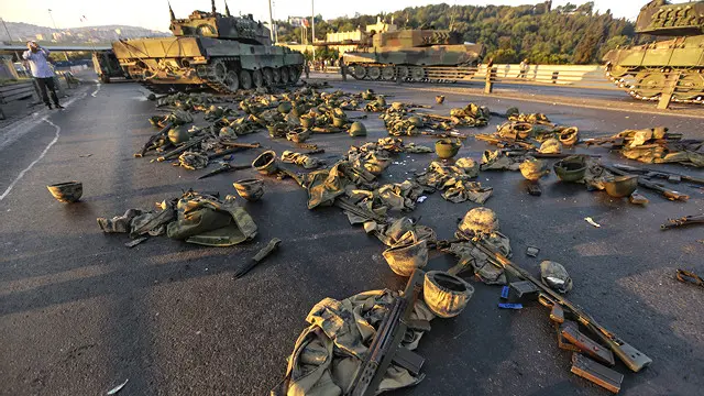 وړاندې، یوه چورلکه، چې کودتاچیانو پوځیانو ترې ګټه اخیسته، د انقرې پر اسمان د چورلېدو پرمهال د اردوګان د ملاتړو ځواکونو له خوا راوغورځول شوه.