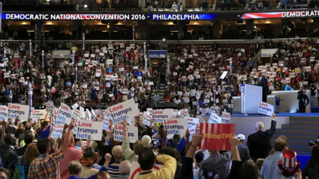 پرون ماښام وختي د ښاغلي سنډرز پلويانو د اغلې کلنټن د 'نامهم' توي له يادولو سره د مخالفت غږونه پورته کول؛ هغه د سه شنبې په ورځ د خپل ګوند لخوا د ولسمشرۍ لپاره نوماندي مني.