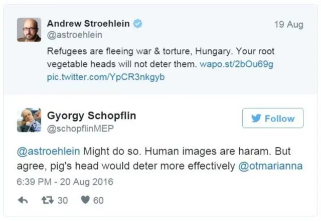 د فیډز واکمن ګوند غړي ګیورګي چوپفلین غوښتنه وروسته تر هغه رامخې ته شوې، چې د هنګري پر سوېلي پوله د ځینو سبزیو انځورونه د خنځير د سرونو په شکل جوړ او ځای پرځای شوي وو.