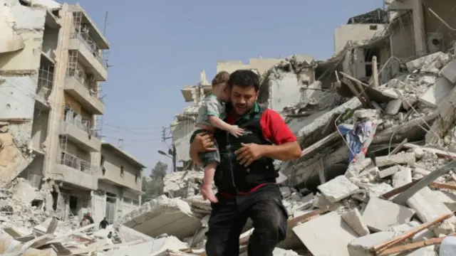 د سوریې د انساني حقونو څارونکې ډله وایي، په دې سیمه کې ۱۴ هوايي بریدونه شوي او "لوی اور" بل شوی دی.