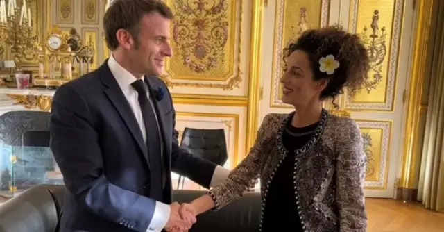 امانوئل مکرون، رئیسجمهوری فرانسه، ۲۰ آبان، در کاخ الیزه با مسیح علینژاد و لادن برومند، فعالان زن ایرانی، دیدار داشت.