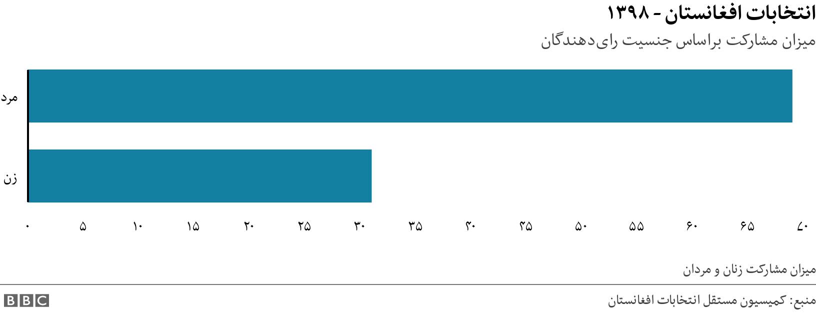 از مجموع یک میلیون و ۸۲۴ هزار و ۴۰۱ رایدهنده در انتخابات افغانستان سی و یک درصد از آن زنان بودند.