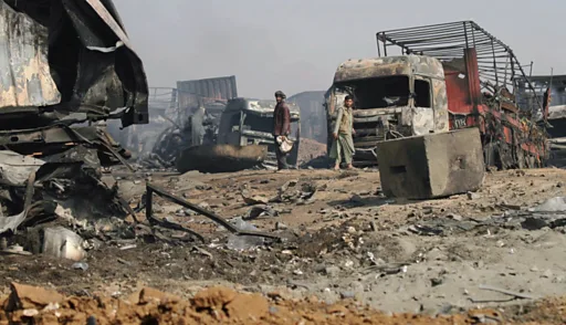 وزارت دارایی افغانستان: آتشسوزی در مرز ایران مهار شد؛ '۵۰۰ تانکر' به ارزش دهها میلیون دلار در آتش سوخت
