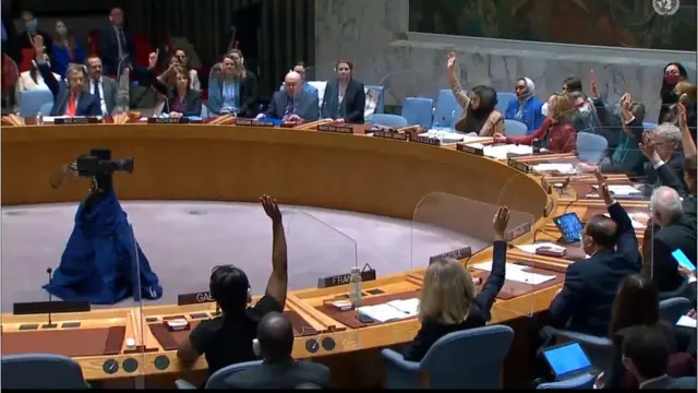 ۱۴ عضو شورای امنیت به این قطعنامه رای مثبت دادند و تنها روسیه به آن رای ممتنع داد.