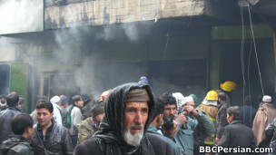 علی سلیمی، خبرنگار بیبیسی فارسی که به محل آتشسوزی رفته، میگوید که در این آتشسوزی به کسی آسیب نرسیده، اما اجناسی که در مغازهها بوده، سوخته است.