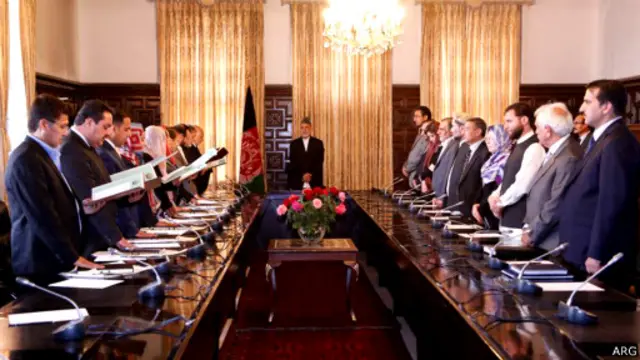 دفتر آقای کرزی در اطلاعیهای نوشته که این مراسم در کاخ ریاست جمهوری برگزار شد و در آن رئیسان مجلس نمایندگان و دادگاه عالی و اعضای پیشین کمیسیون هم حضور داشتند.